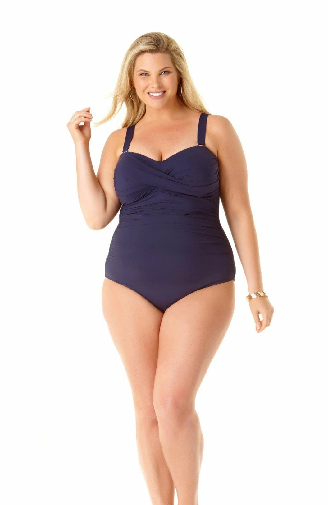 Anne Cole Plus Size Twist Front Shirred Bandeau One Piece Swimsuit 20PO00501-Navy
