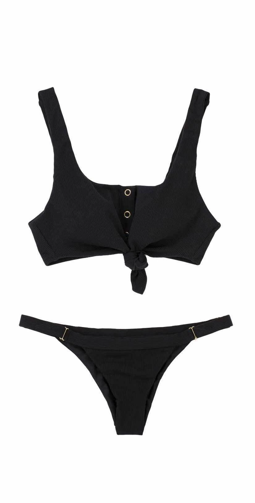 The Beach Bunny Rib Tide Skimpy Bottoms In Black is a cheeky bottom with side buckle straps that are adjustable. This bottom is textured and sits on the hips. They pair perfectly with the Beach Bunny Rib Tide Top.
