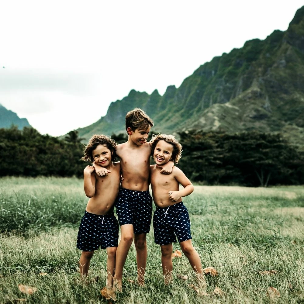 Bermies swim trunks are stretchy, breathable, and fast-drying for a comfortable fit. These bottoms offer a 4-way stretch, mesh liner, and pockets and are featured in a shark print.