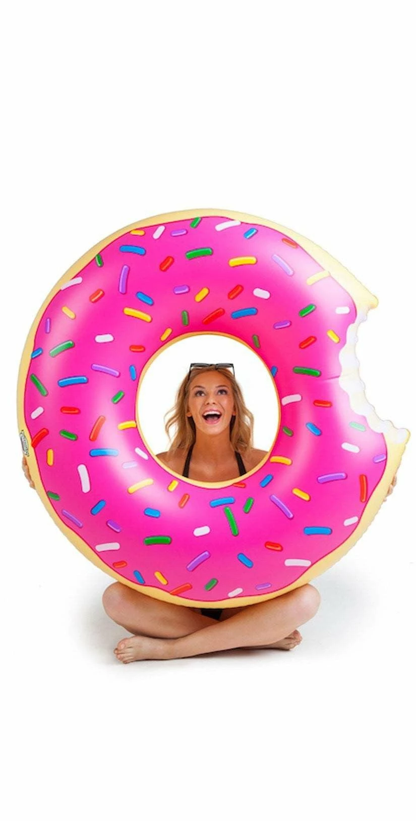 Float away on top of this scrumptious pink frosted donut pool float! The Big Mouth Giant Donut float is 4ft wide and holds up to 200 lbs. Easily inflates and wipes clean to fold up for storage.