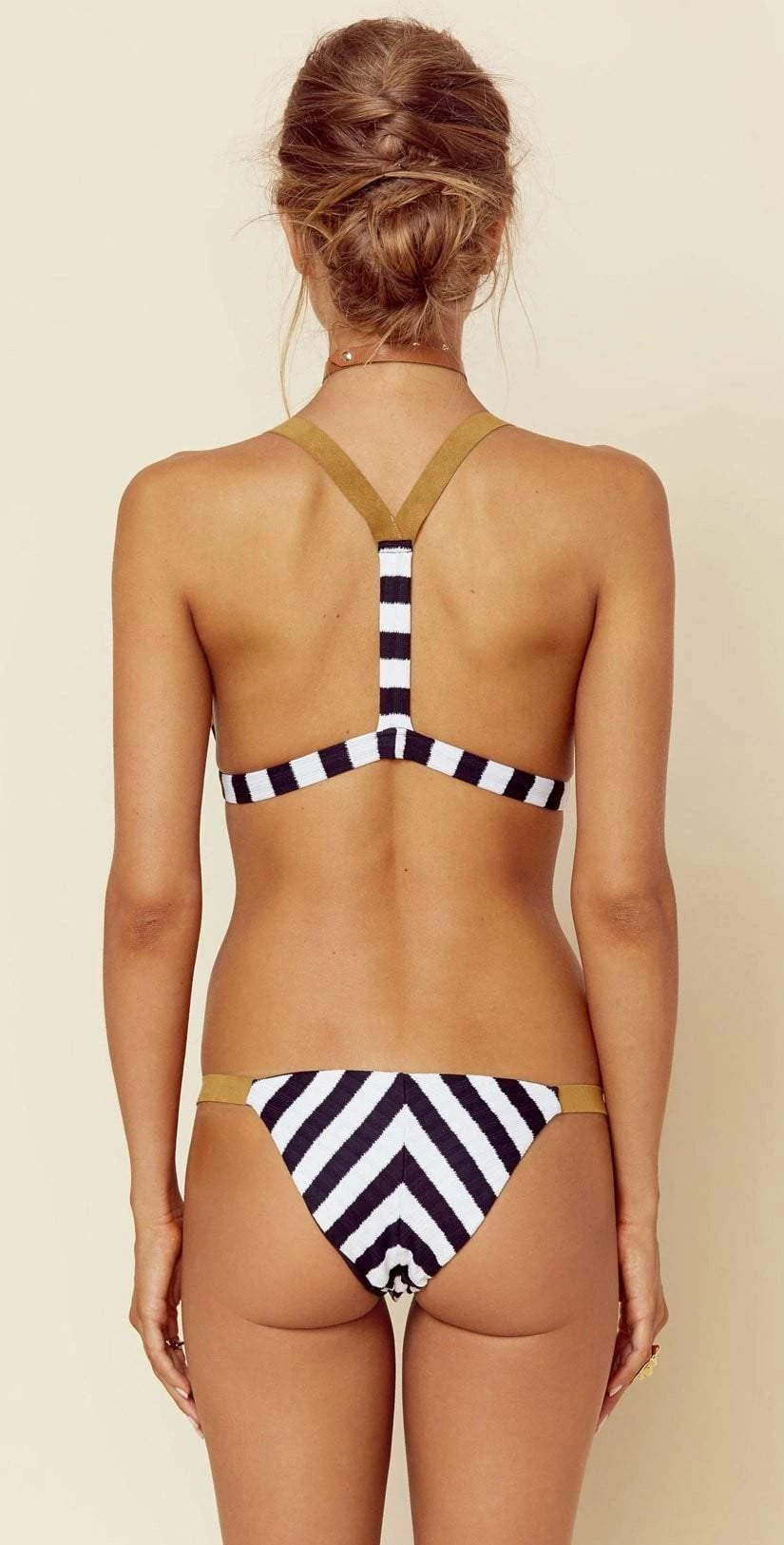 The Blue Life Buckled Skimpy Bottom has a faux suede strap and cheeky back coverage bottom. This bottom sits on the hips and pairs perfectly with the Blue Life Buckled Tri Top.