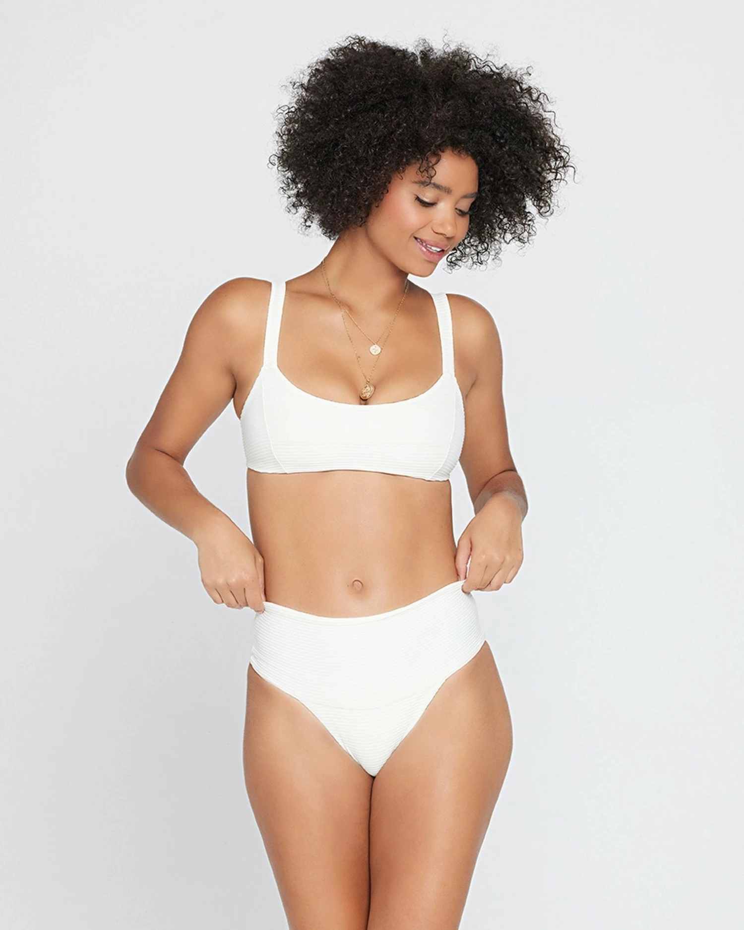 Part of our „Eco Chic Off the Grid“ collection, the fiber in this pullover bikini top is made from 100% recycled materials. Using REPREVE® – A high quality performance fiber. Featuring ribbed fabric and a comfy double banded back, this is style you can feel good about.