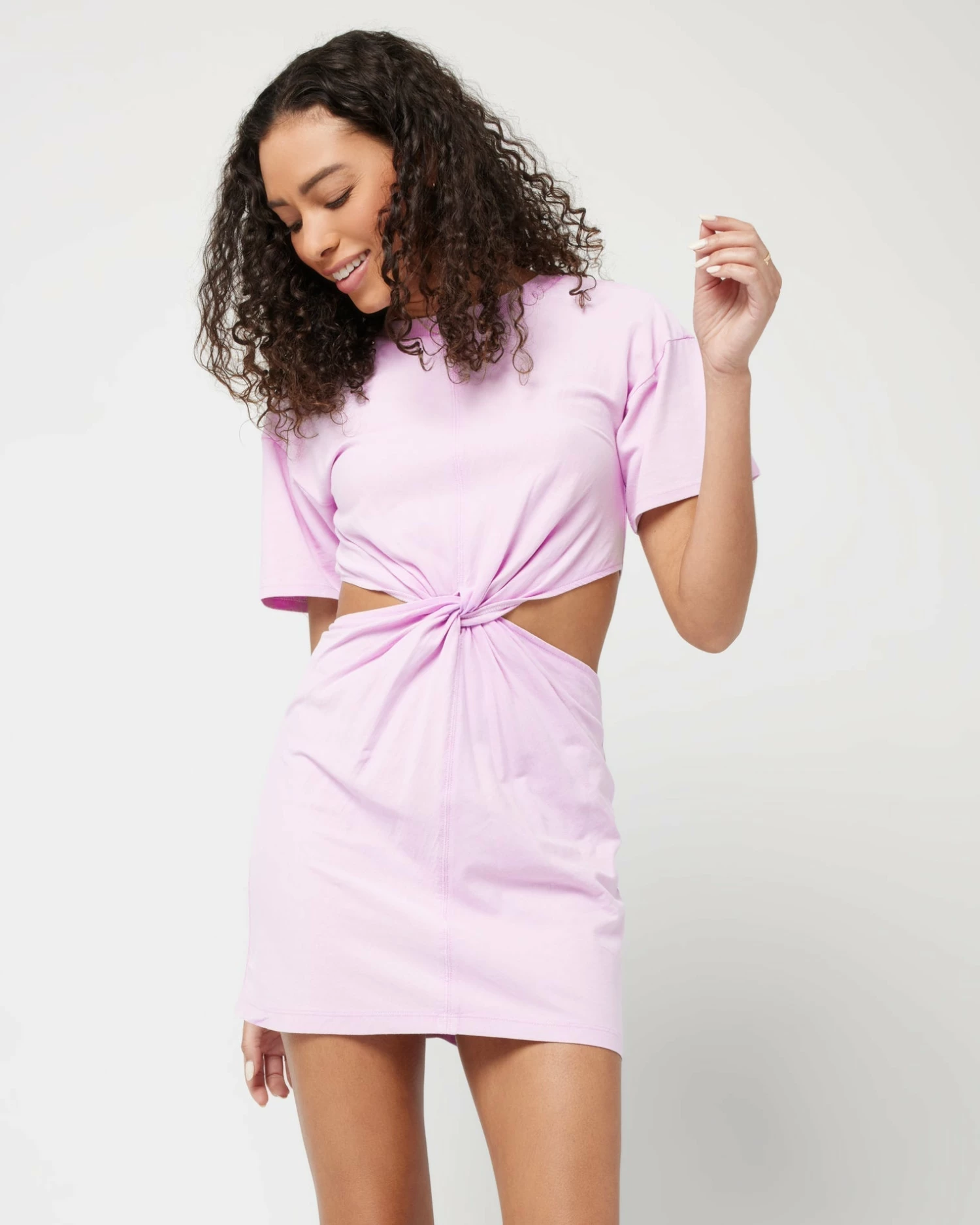 Minimal with some edge. The Lost Winds Dress is our play on the t-shirt dress, rendered from jersey with a ribbed neck band featuring cutouts on the sides and accented by a center front twist detail at the waist.