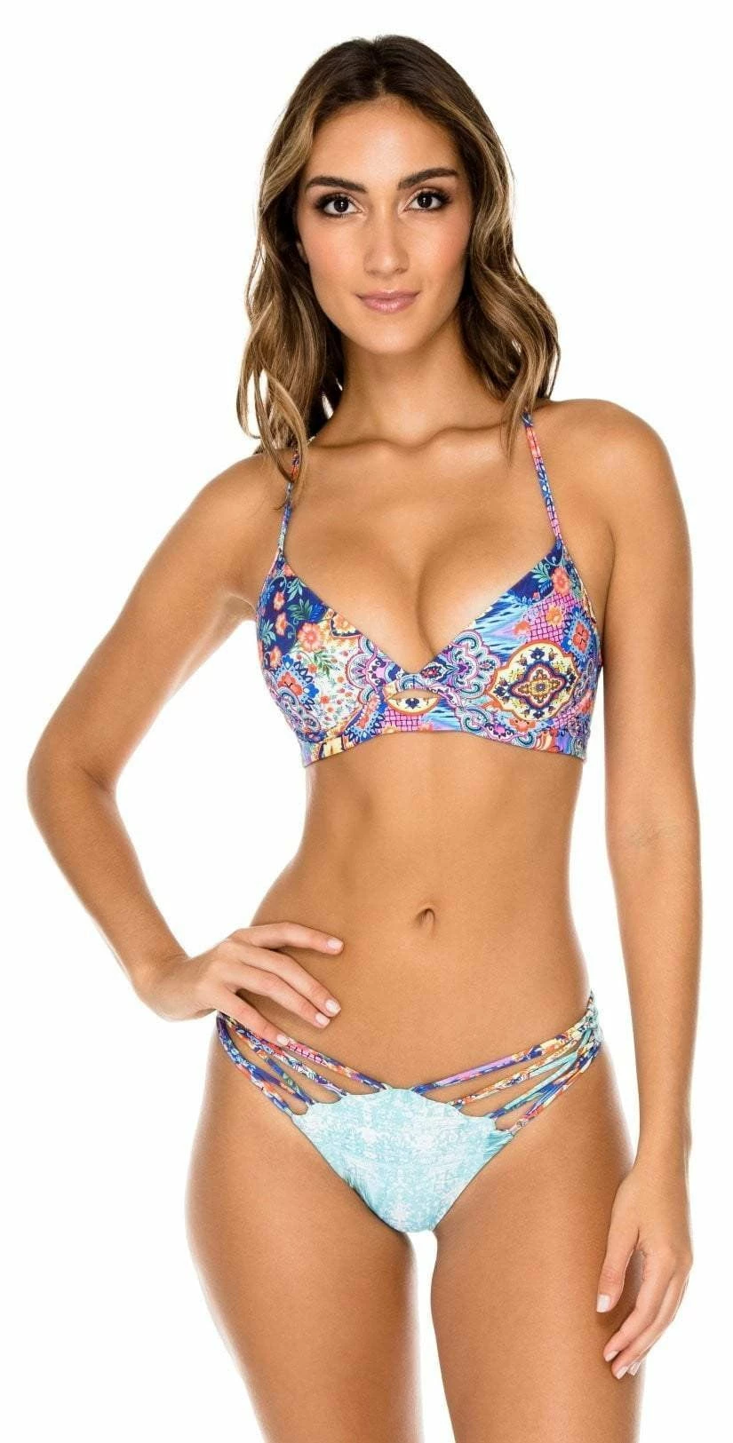 The Luli Fama Wapisima Paraiso Brazilian Bottom are a low-rise bottom with a sexy multi strap detail in the front. These bottoms are reversible and offer Brazilian coverage. Pairs perfectly with your favorite top from the Wapisima Collection