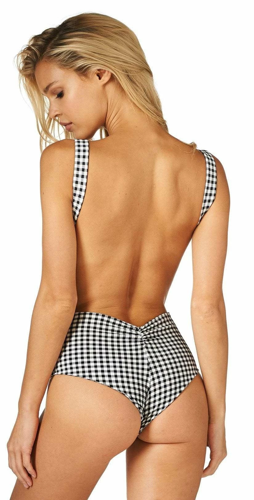 This retro chic Gingham One Piece from Montce Swim is so sexy! Featuring a super low open back detail with slight ruching down the bottom for a flirty sweetheart look. Its cheeky bottom coverage makes this suit perfect for you beach babes wanting to show some skin!