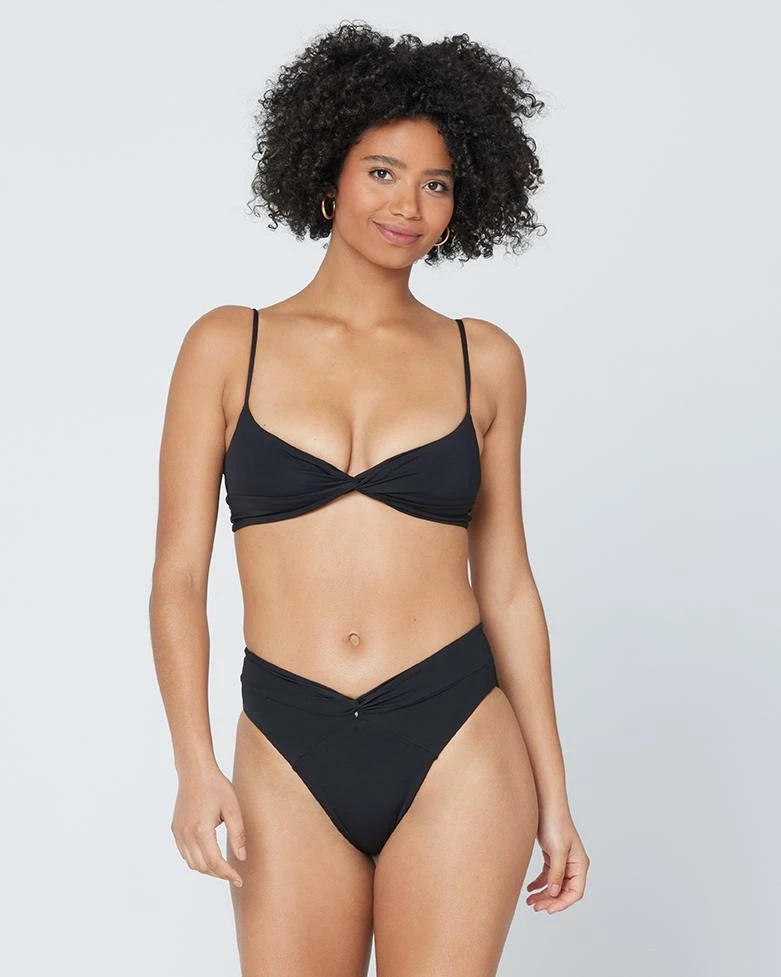 The Nancy Lee is a vintage-inspired bottom with bold style and a twist front detail. A high waist is balanced with a sexy high cut leg and bitsy coverage.
