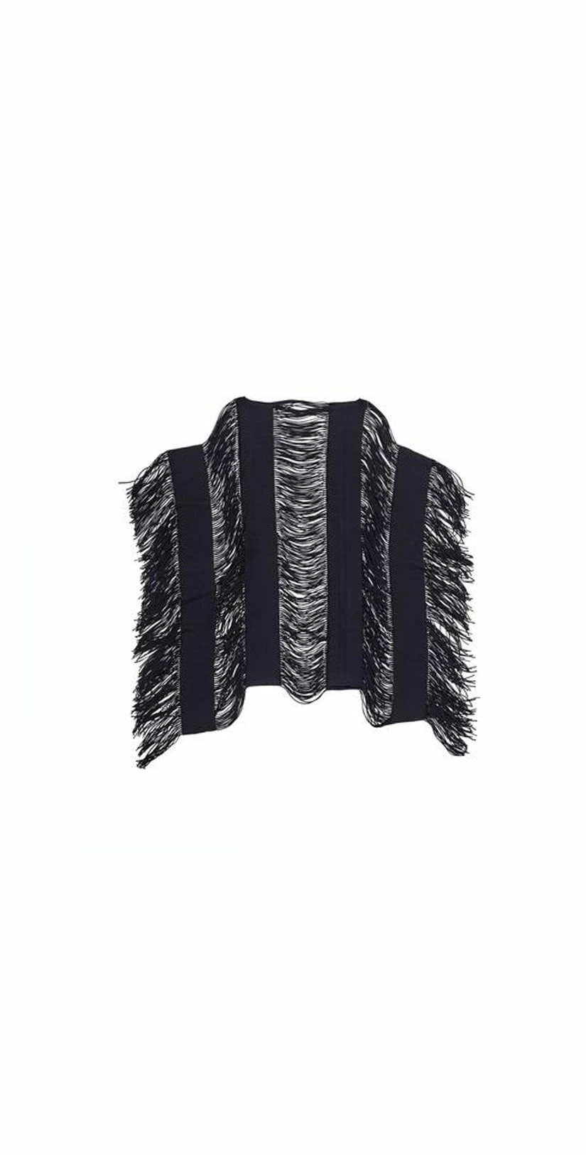 The PilyQ Black Gold Monique Coverup is a lightweight, poncho style cover up featuring sexy fringe cut out details and shirred fabric throughout. Perfect to wear over your favorite swimsuit!