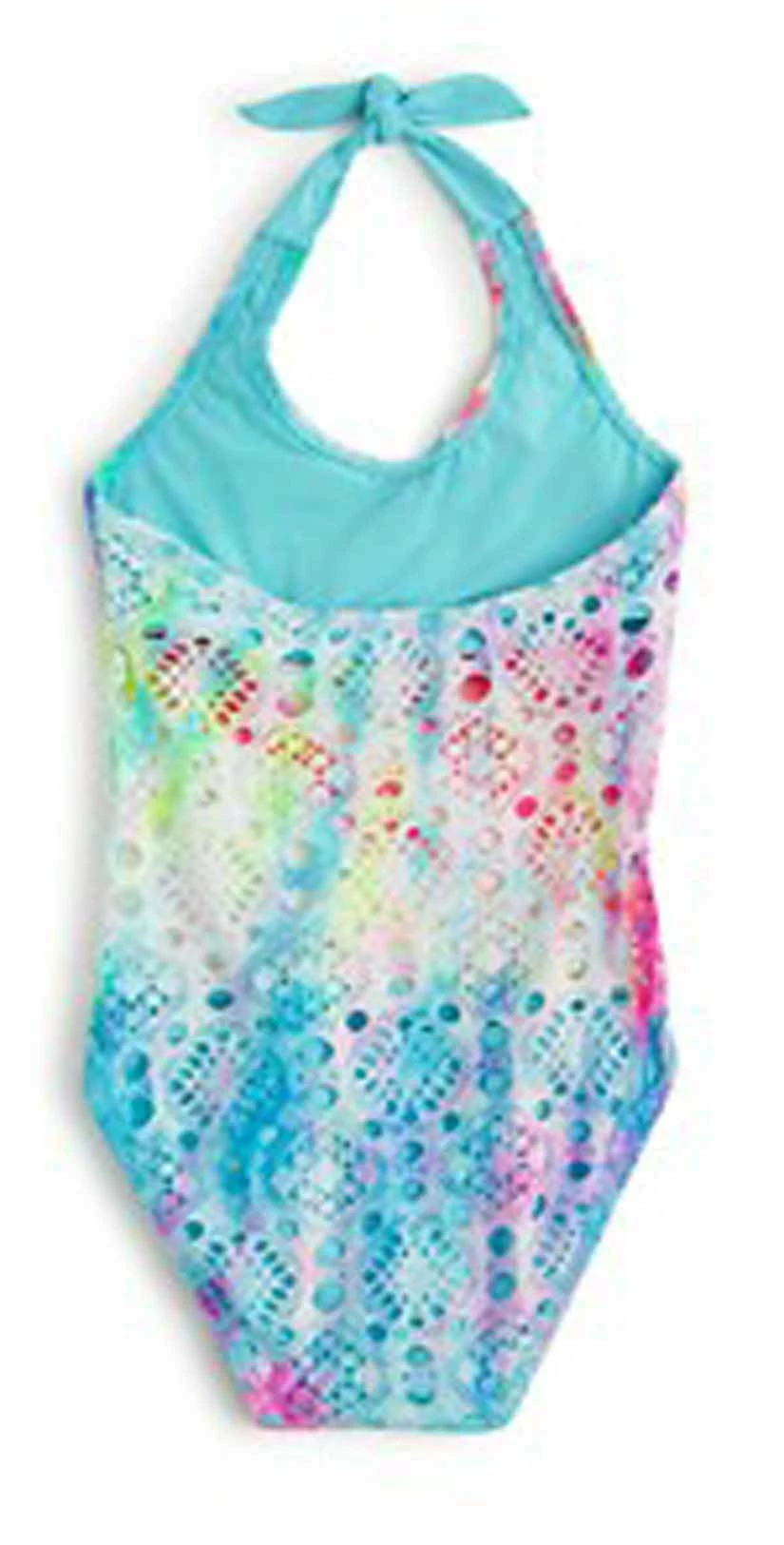 The PilyQ Girls Rainbow Lace One Piece Swimsuit has a bikini lining with a lace overlay one-piece body style. This swimsuit is hand-dyed so each one will differ in color. Let your mini me shine in this super adorable swimsuit!
