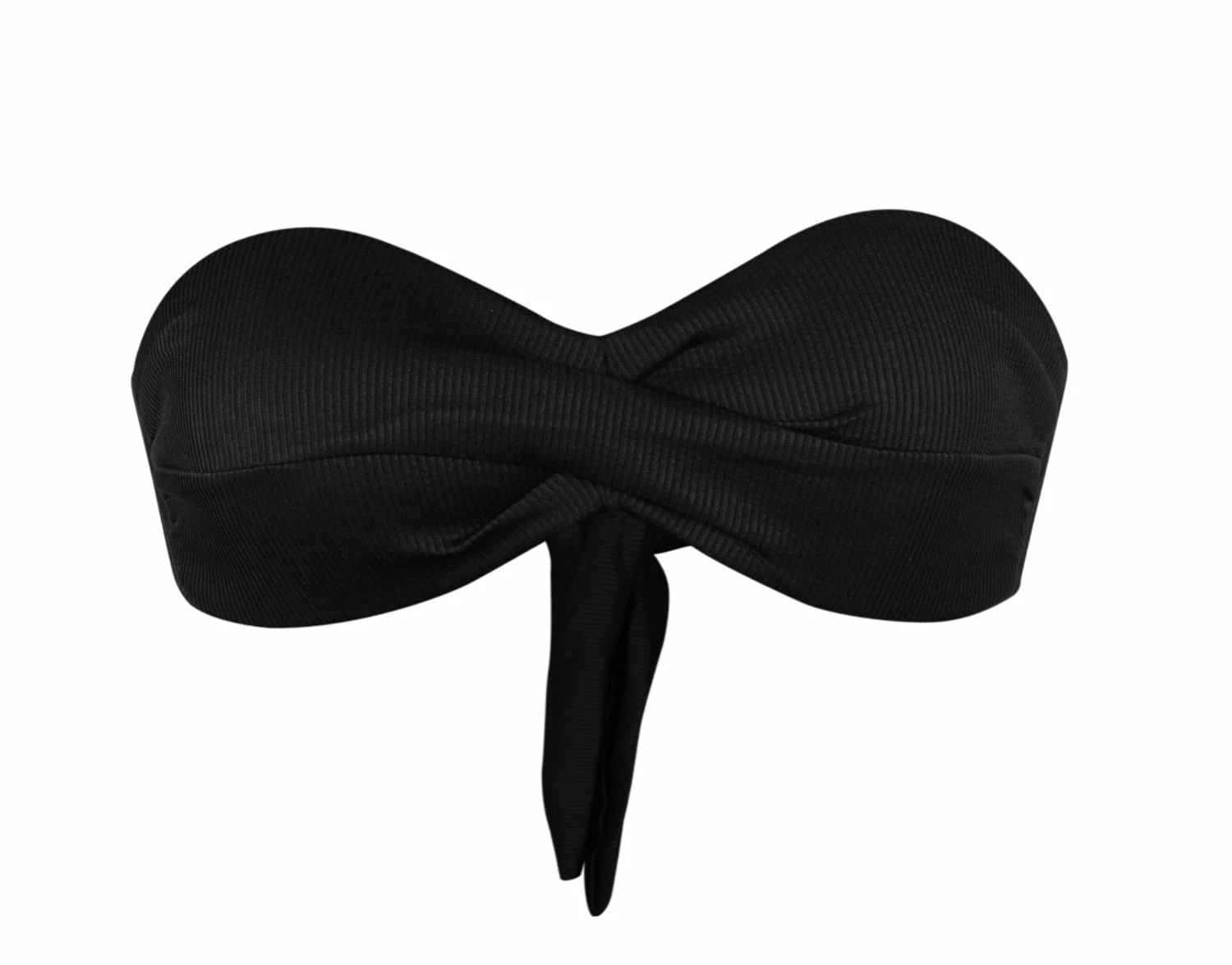 The PQ Swim Black Pearly Goddess Bandeau has ribbed material and a twist front for an elegant and stylish bandeau top.