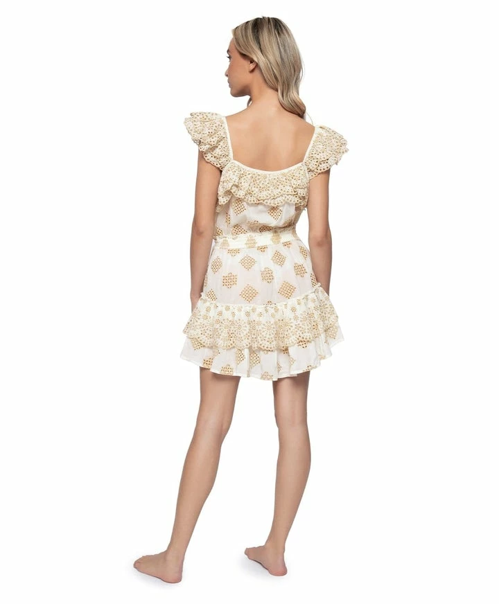 A summer must-have! This cute and flirty PQ Swim dress features a cinched waist, ruffle short sleeves, and a tiered ruffle trim. Perfect for day wear into the evening.