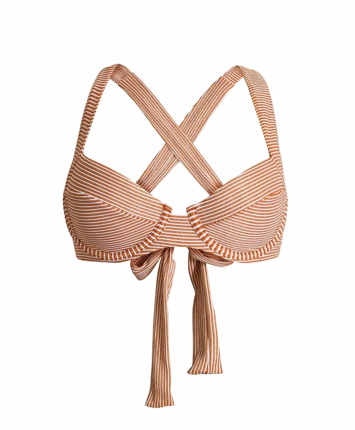 This halter will give you that extra lift you are looking for. Comes with supportive underwire, crossed straps, and a tie closure in the back. Pair it with the matching PQ Swim Summer Hibiscus reversible basic ruched bottoms for the perfect set. Does not have removable padding.