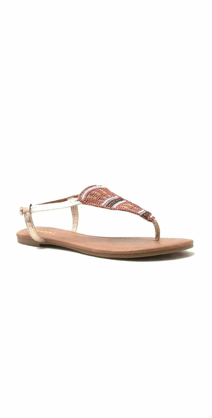 Qupid Shoes Jamilla Embellished T Strap Beaded Sandal JAMILLA-05