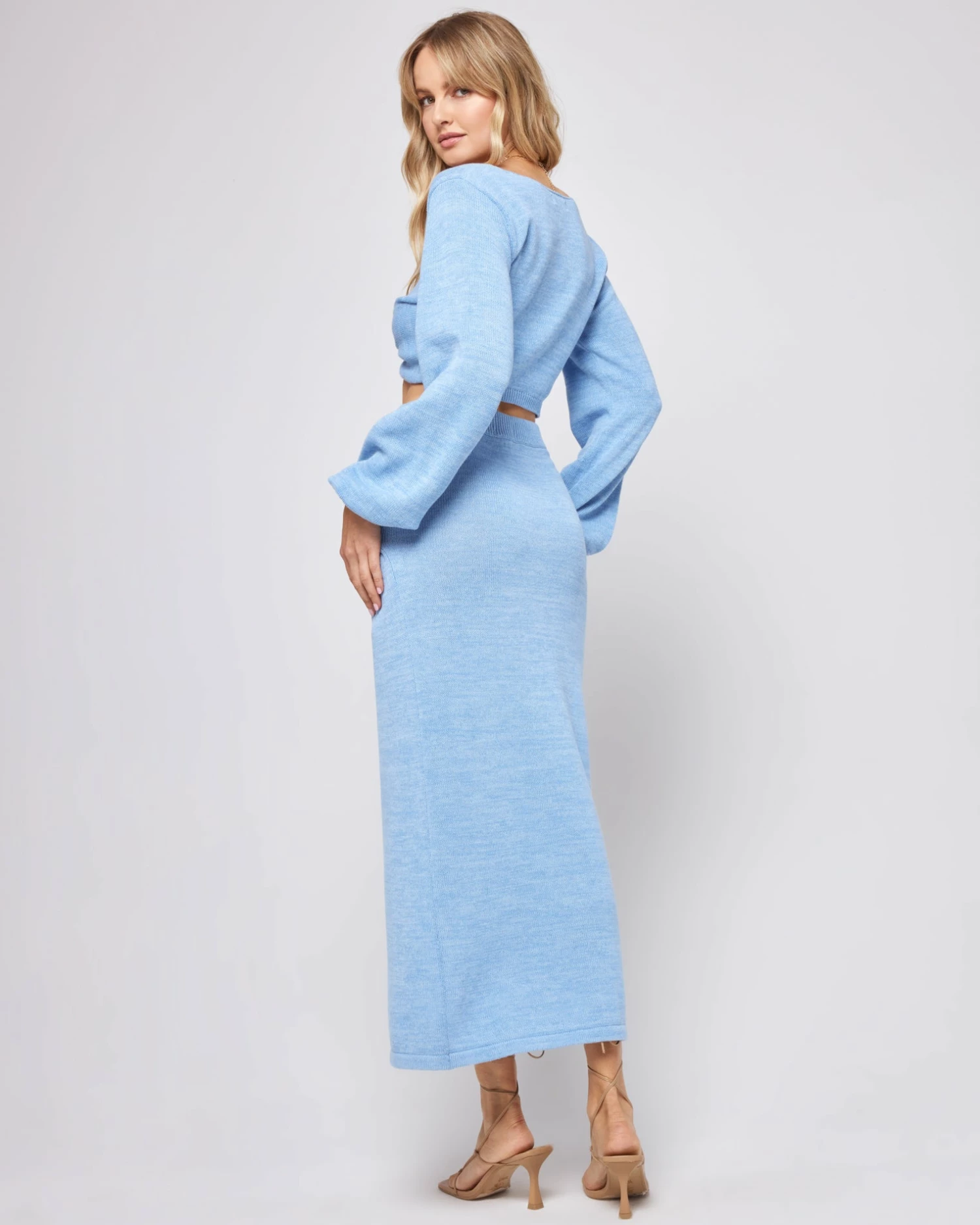 Calling all you sirens… we’ve found the skirt for you. Featuring a ribbed waistband, surplice slit and slim fit, this midi skirt is having a major moment. Pair this versatile knit with the matching Siren Sweater or a cute tank.