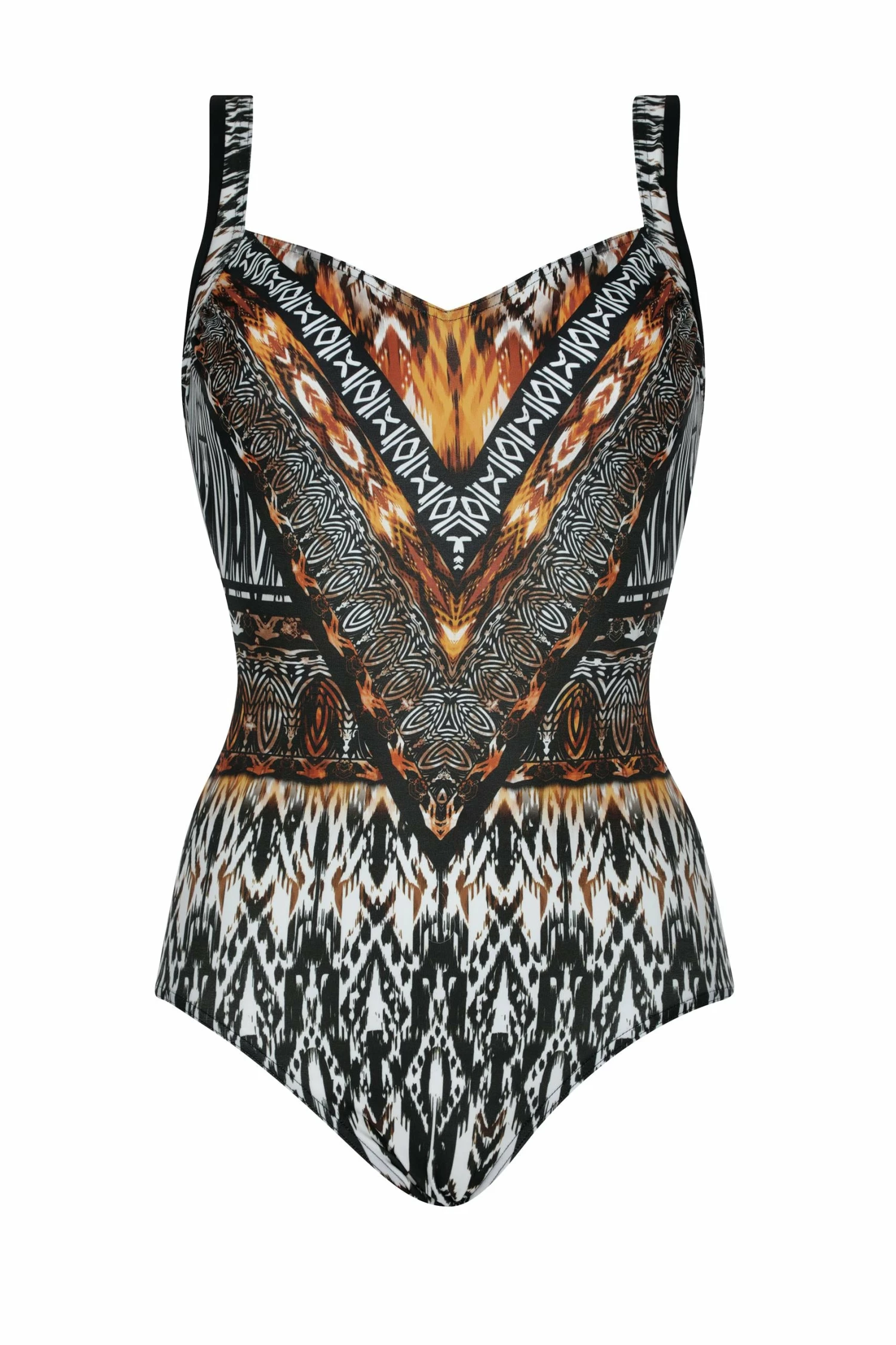 The Sunflair Jungle One Piece Swimsuit is a neutral sweetheart neck one piece that is chlorine resistant with a full coverage bottom.